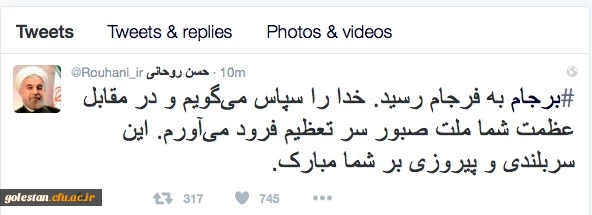 پیام تبریک رییس جمهوری پس از لغو تحریم ها