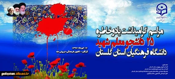 برگزاری مراسم بزرگداشت یادو خاطره 25 دانشجو معلم شهید دانشگاه فرهنگیان استان گلستان در روز شنبه هفدهم تیرماه 2