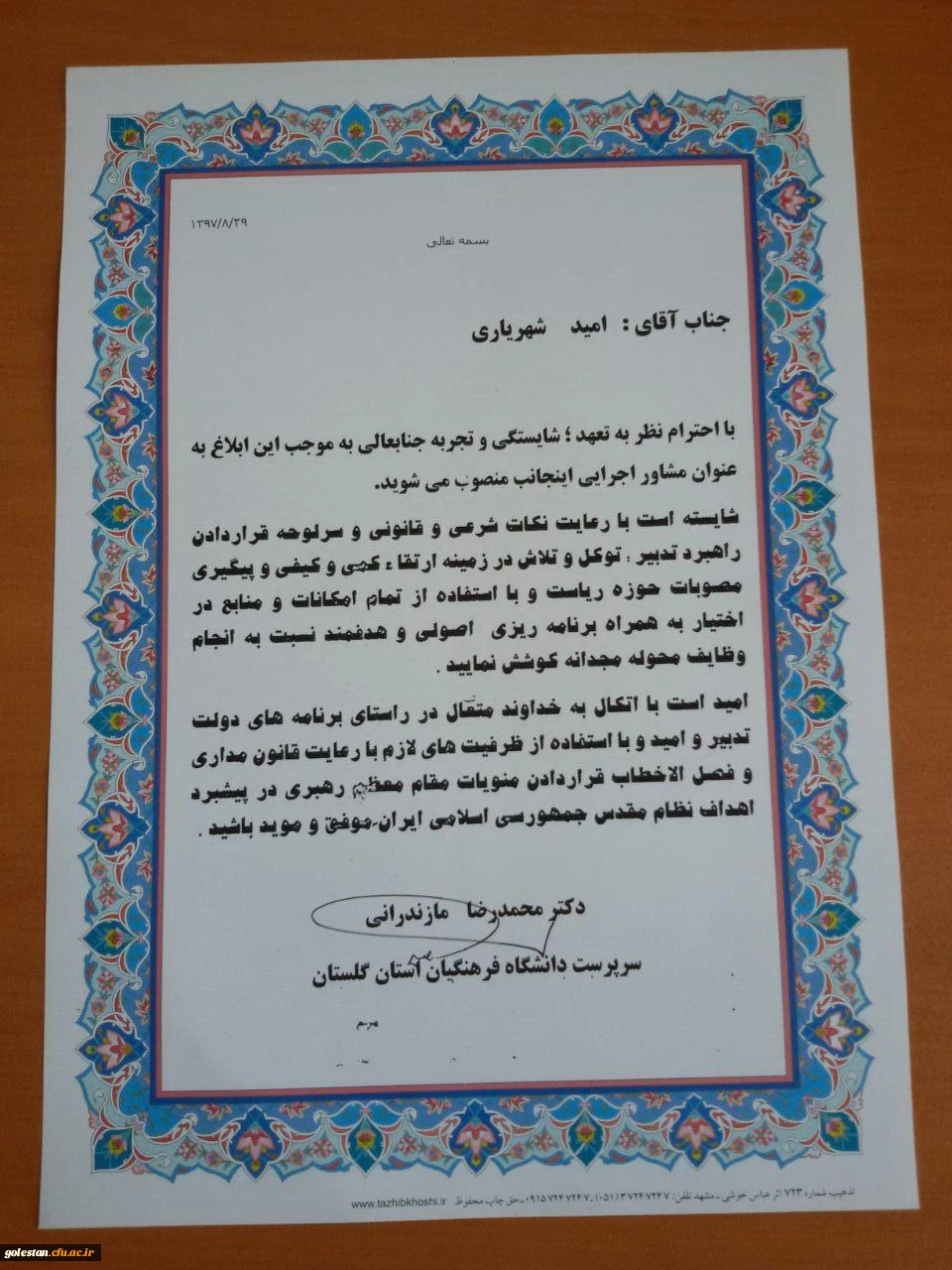 انتصاب مشاور اجرایی سرپرست دانشگاه فرهنگیان استان گلستان 3
