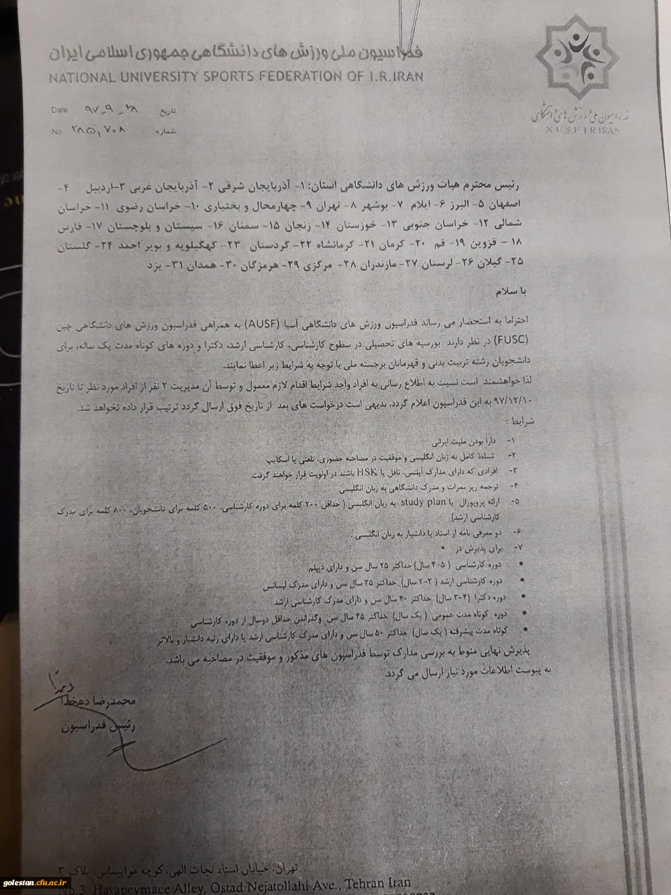 امتیاز دهید : قابل توجه دانشجومعلمان و اساتید اطلاعیه مهم فدراسیون ملی ورزش های دانشگاهی 3 شنبه 29 دی 1397 ساعت 8:25