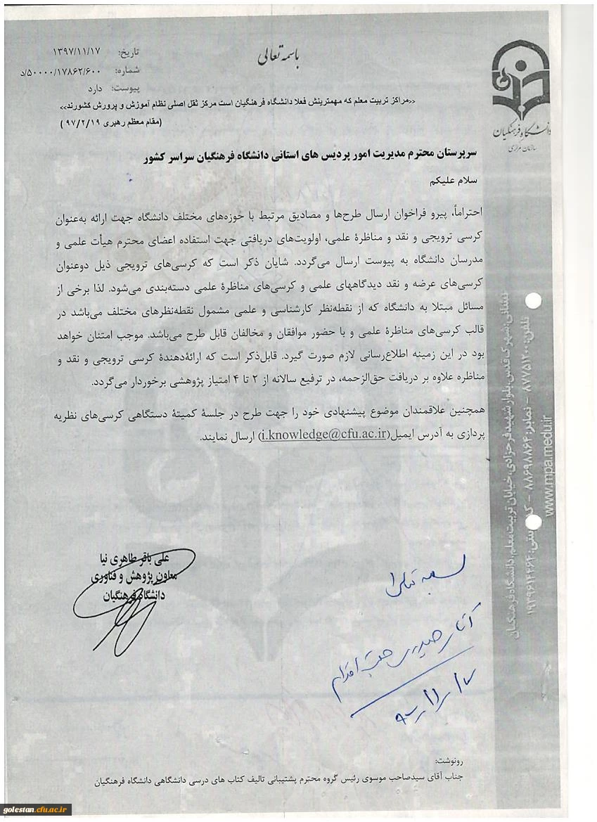 قابل توجه اعضای هیأت علمی و مدرسان فراخوان ارسال طرح ها و مصادیق مرتبط با حوزه های مختلف دانشگاه جهت ارائه به عنوان کرسی ترویجی و نقد و مناظره علمی 2
