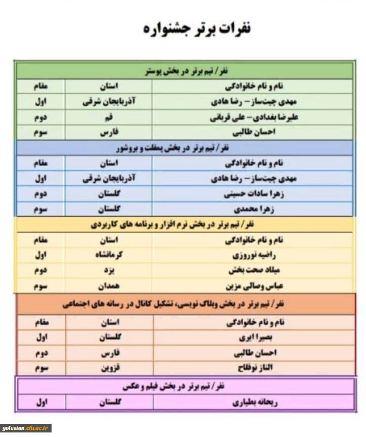 درخشش دانشجومعلمان پردیس امام خمینی (ره) گرگان در چهارمین جشنواره طراحی رسانه های فرهنگی _ ورزشی دانشگاه فرهنگیان 2