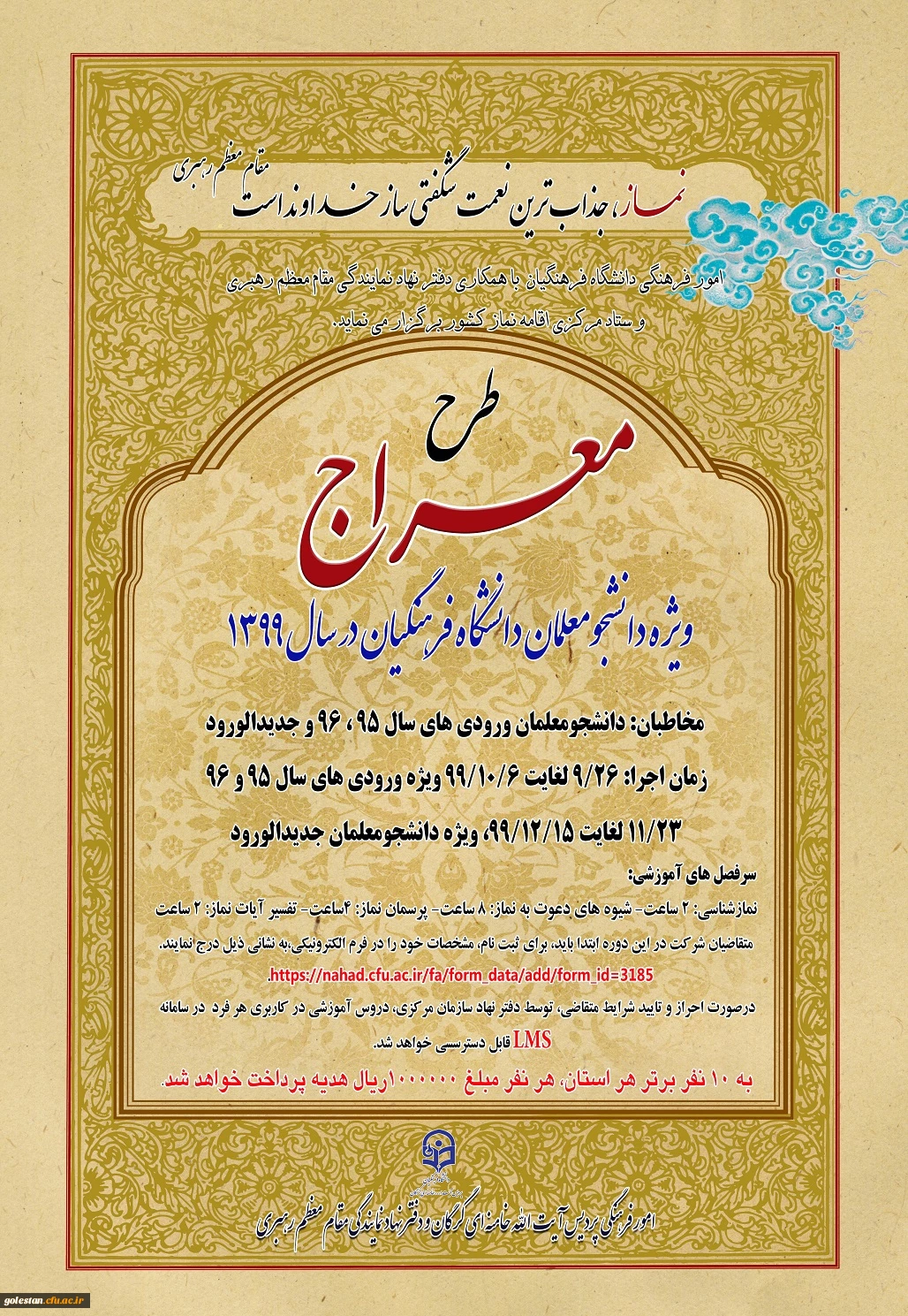 امتیاز دهید : طرح معراج ویژه دانشجومعلمان دانشگاه فرهنگیان در سال 1399 2 سهشنبه 2 دی 1399 ساعت 14:05