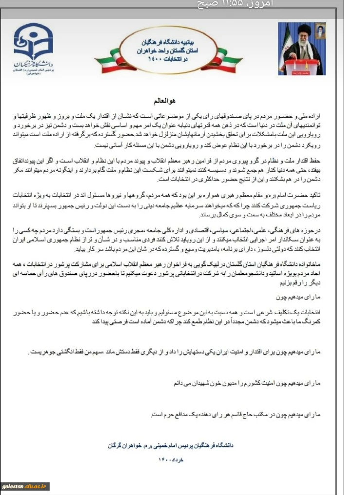 بیانیه دانشگاه فرهنگیان پردیس امام خمینی (ره) خواهران گرگان در خصوص انتخابات ۱۴۰۰ 2