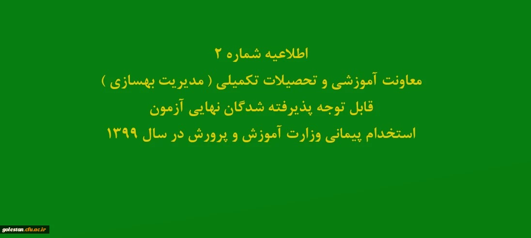اطلاعیه شماره2 معاونت آموزشی و تحصیلات تکمیلی ( مدیریت بهسازی ) قابل توجه پذیرفته شدگان نهایی آزمون استخدام پیمانی وزارت آموزش و پرورش در سال 1399 2