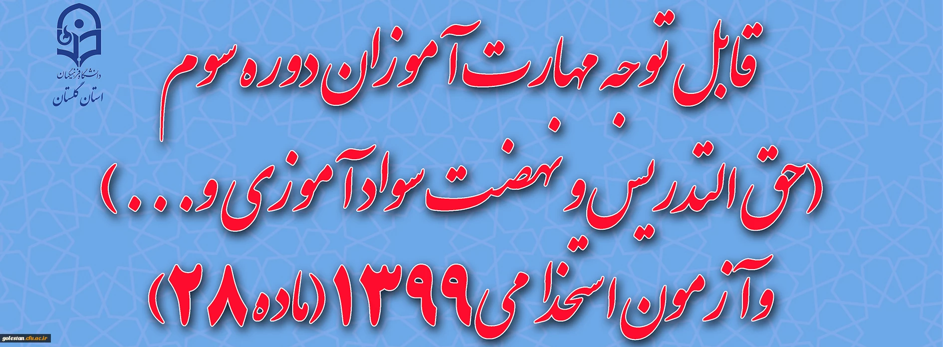 اطلاعیه : قابل توجه مهارت آموزان دوره سوم (حق التدریس و نهضت سواد آموزی و...) وآزمون استخدامی 1399(ماده 28) 2