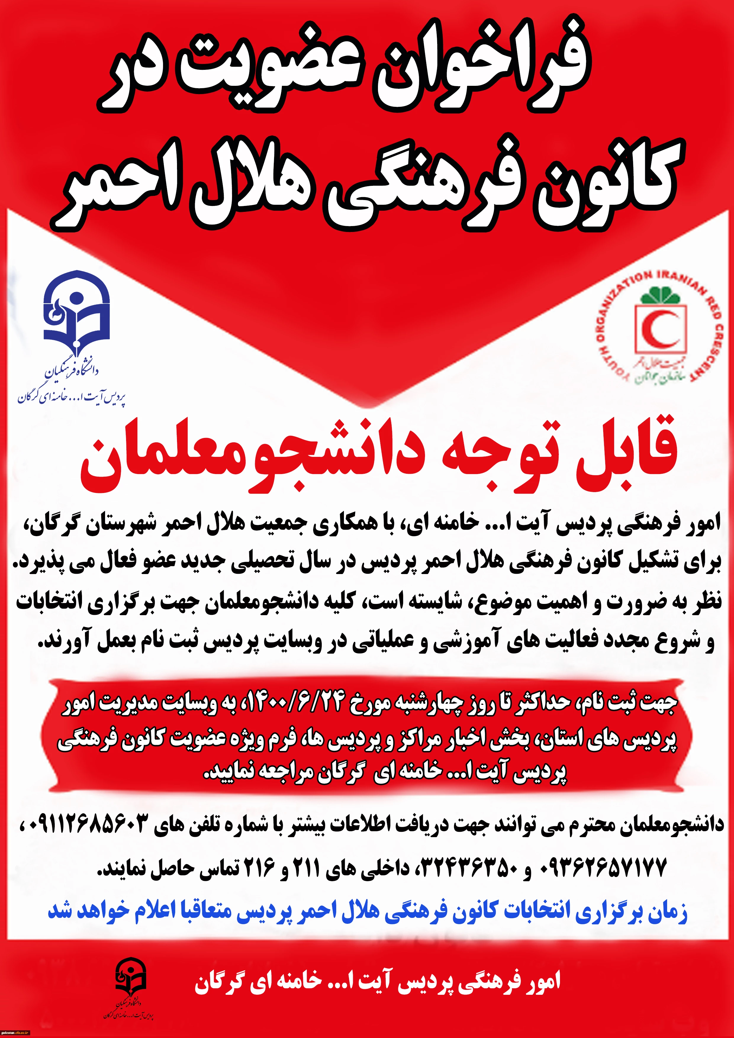امتیاز دهید : فرم ثبت نام عضویت در کانون فرهنگی هلال احمر پردیس آیت ا... خامنه ای گرگان 2 یکشنبه 21 شهریور 1400 ساعت 11:57