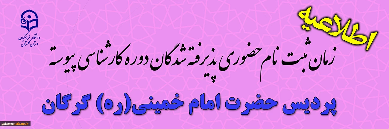 اطلاعیه ثبت نام حضوری و تحویل مدارک دانشجویان جدیدالورود سال 1401 پردیس امام خمینی(ره) گرگان 2