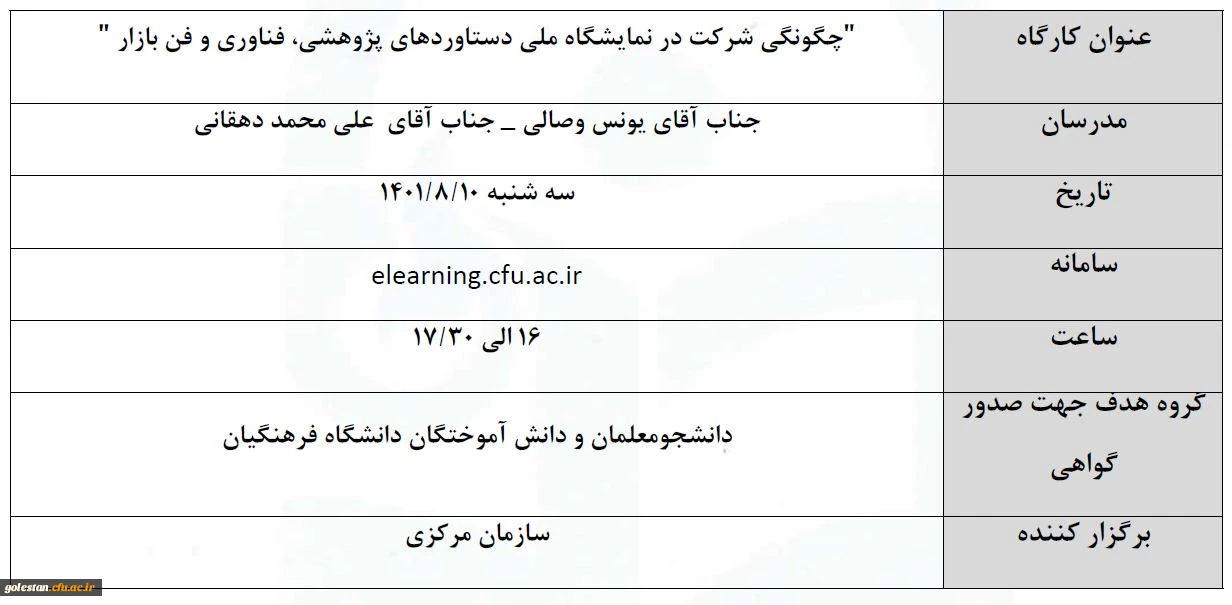 کارگاه آموزشی ویژه شرکت کنندگان نمایشگاه ملی دستاوردهای پژوهشی، فناوری و فن بازار 2
