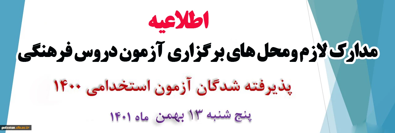 امتیاز دهید : اطلاعیه آزمون دروس فرهنگی پذیرفته شدگان آزمون استخدامی 1400 2 سهشنبه 11 بهمن 1401 ساعت 16:36
