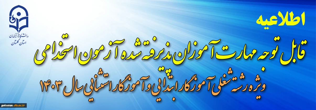 قابل توجه مهارت آموزان پذیرفته شده آزمون استخدامی ویژه رشته شغلی آموزگار ابتدایی و آموزگار استثنایی سال ۱۴۰۳ 2