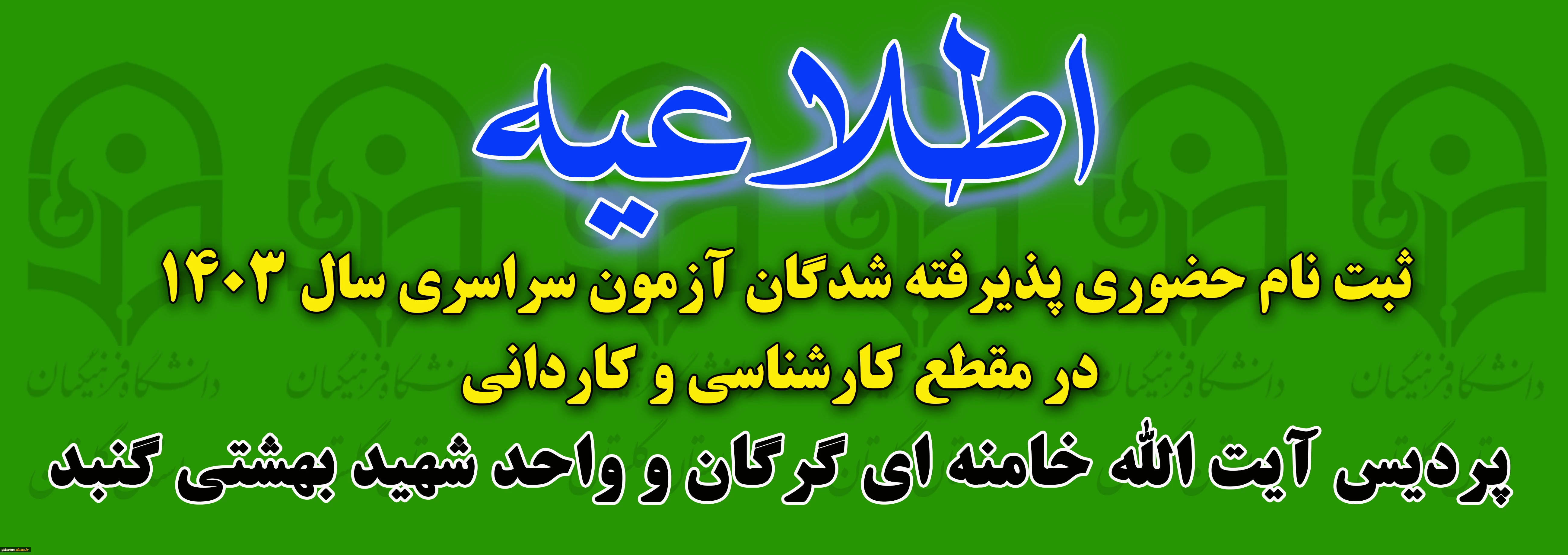 پذیرش حضوری پذیرفته شدگان دوره کارشناسی وکاردانی سال 1403 (پردیس آیت الله خامنه ای گرگان و واحد شهید بهشتی گنبد) 2