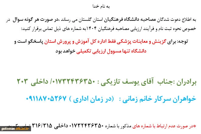 اطلاعیه در خصوص دعوت شدگان به مصاحبه دانشگاه فرهنگیان 2