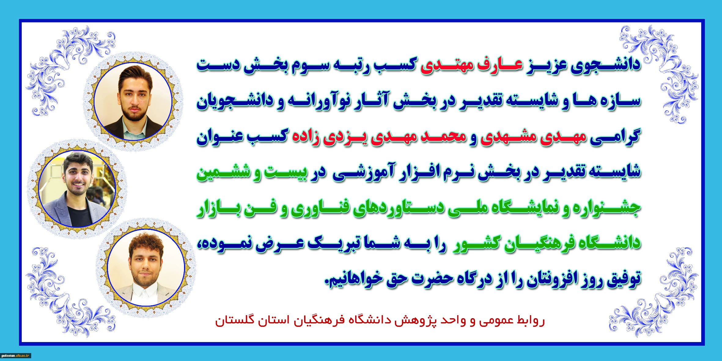 کسب رتبه های برتر دانشجویان پردیس آیت الله خامنه ای گرگان در بیست و ششمین نمایشگاه دستاوردهای پژوهش و فناوری و فن بازار 2